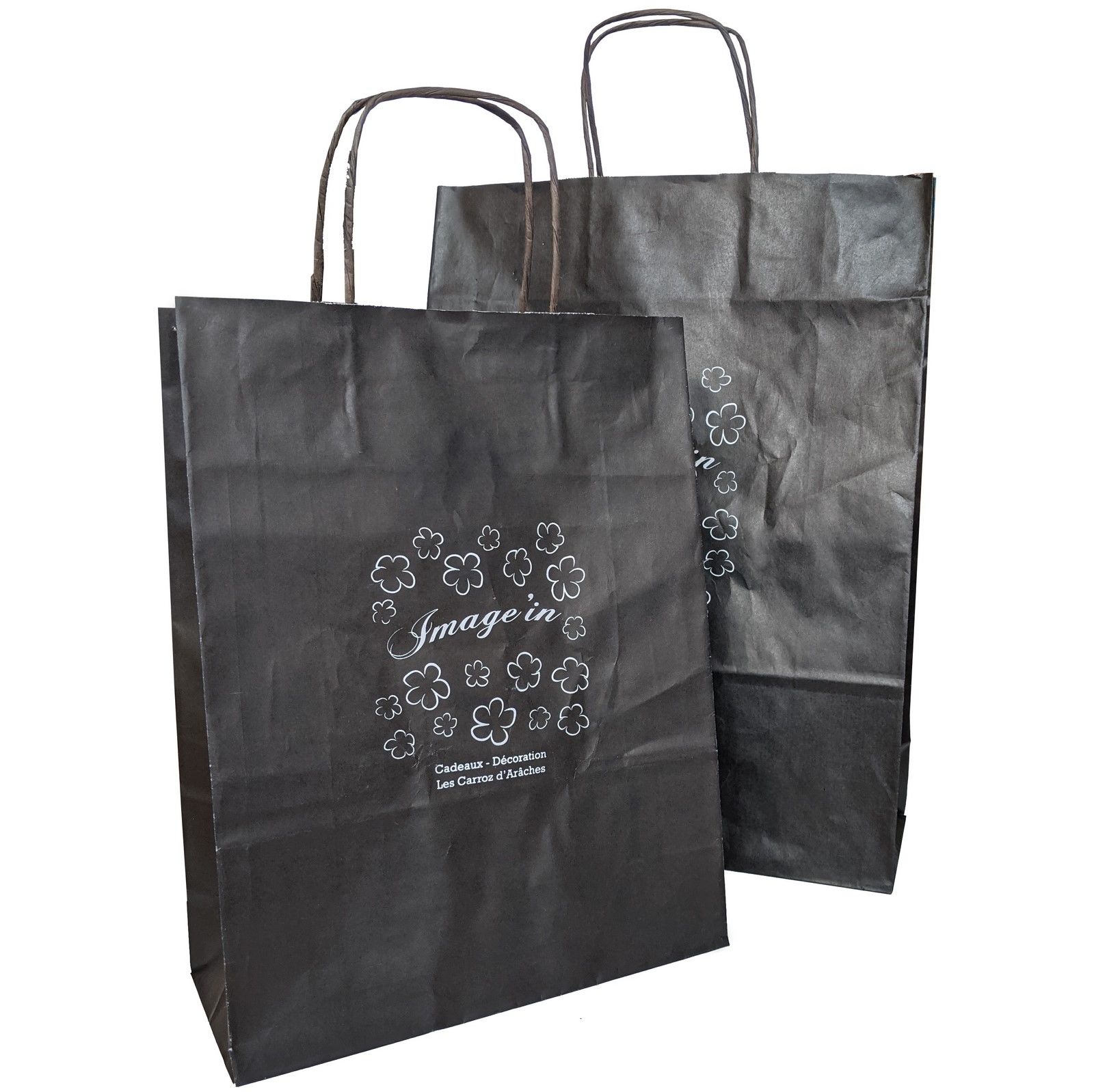• sac kraft noir à poignées ficelle